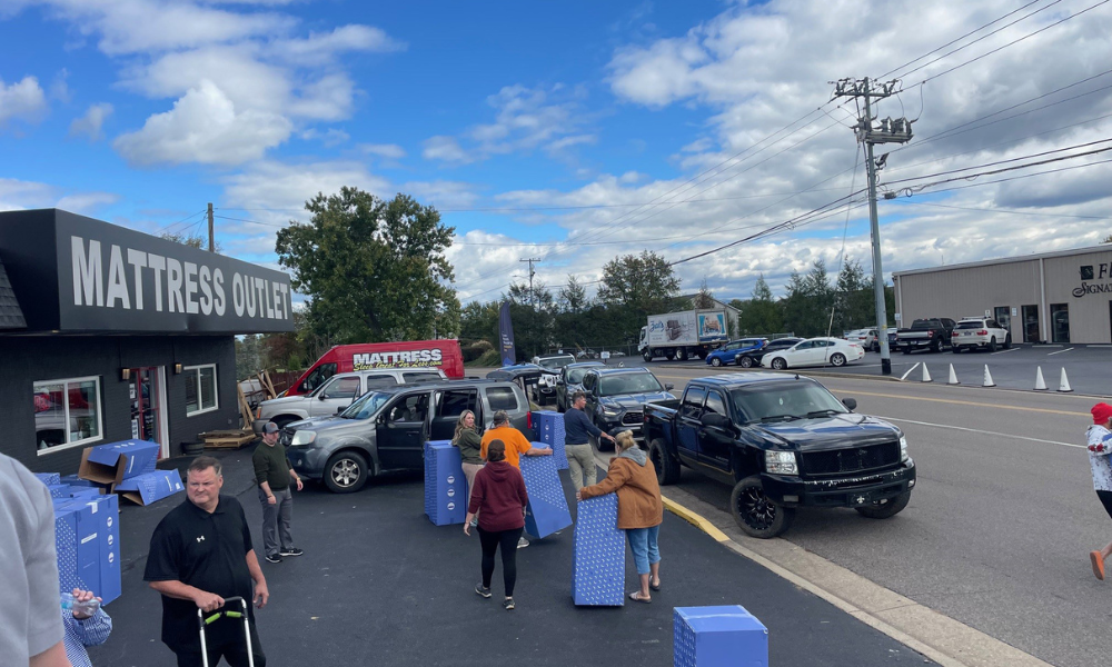 MLily sales representatives Gregg and Grayson Layne delivered the mattresses to Mattress Outlet of Johnson City, which held an event the same day for victims to pick up free mattresses. Officials at the event said all the mattresses had been distributed within an hour.