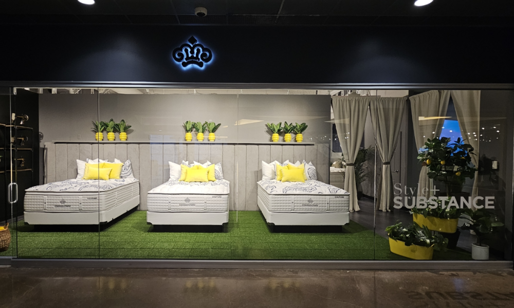 “We all aspire to captivate someone’s senses, and the original Vintage Couture Indigo Dream was created to capture attention, to stop people in their tracks in the hallway on the 14th floor of Building C and entice them to walk into our showroom to experience all that we offer,” says Kingsdown Chairman Michael James, who designed the collection. “The reality is we sometimes get away from the idea that the bed in the window should sell, that it’s important to transact with a high-fashion look. The truth is that we didn’t actually expect people to walk in and say, ‘I want that.’ But they did.”