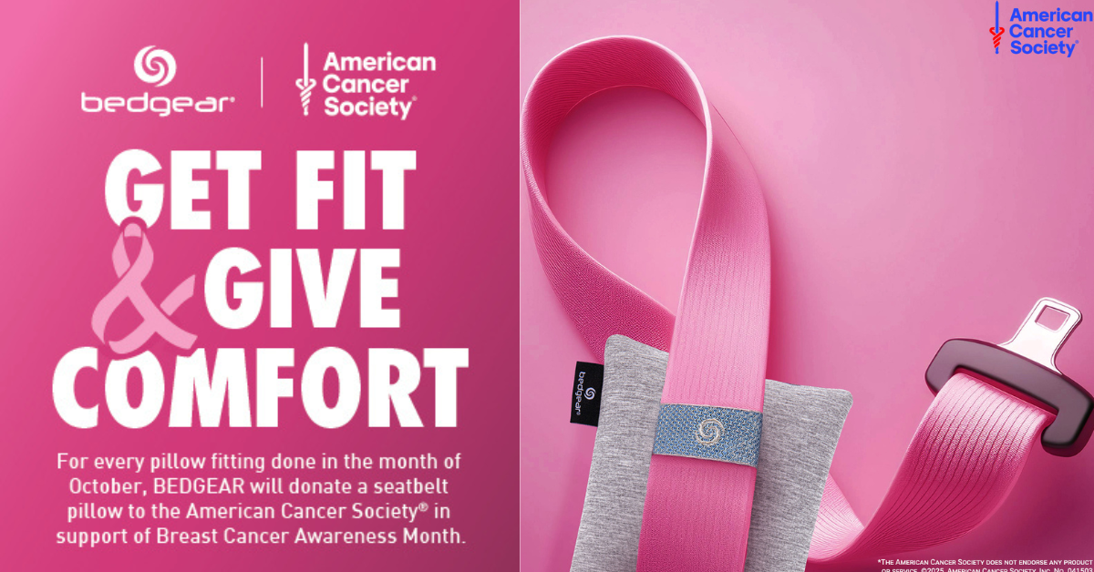 For years, Bedgear has supported the American Cancer Society through its Seatbelt Pillow program, providing comfort to patients undergoing treatment and helping fund breast cancer research.