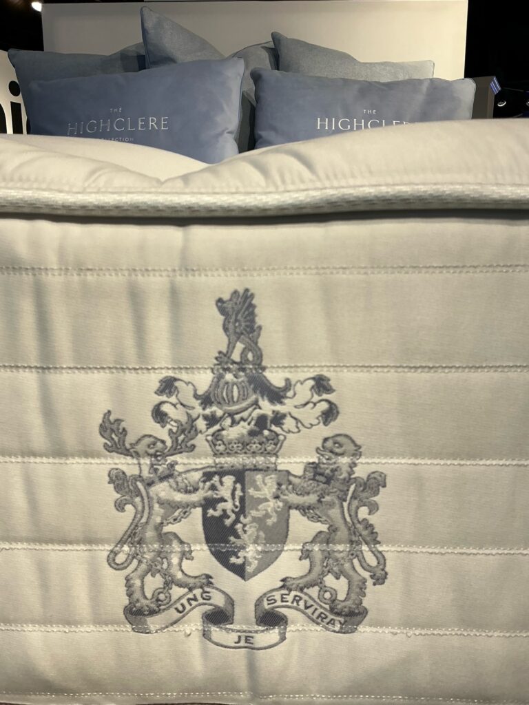 The Carnarvon family crest is featured on the borders of some of the new Wessex Collection mattresses introduced by AW Industries.