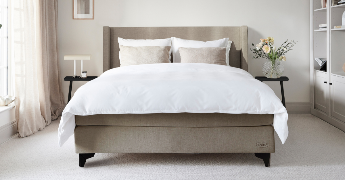 With a customized choice of firmness on each side of the mattress, Jensen’s Super King beds offer personalized comfort. And by choosing the Jensen Exact Comfort Adjustment as an add-on, lumbar support can be fine-tuned with the push of a button, allowing each side of the bed to be individually adapted as comfort preferences and needs change. This turns a bed from Jensen into a truly personalized sleep system.