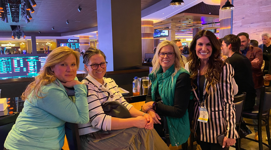 (Left to right) Kristin Sugar, Cariloha, Rae Eyer, Healthy ZZZ’s Sit and Sleep, Angie Thompson, Midwest Mattress Company, Jill Lucien, Steamboat Spring at the Mattress Industry Network event at Victory Burger in the Circa.