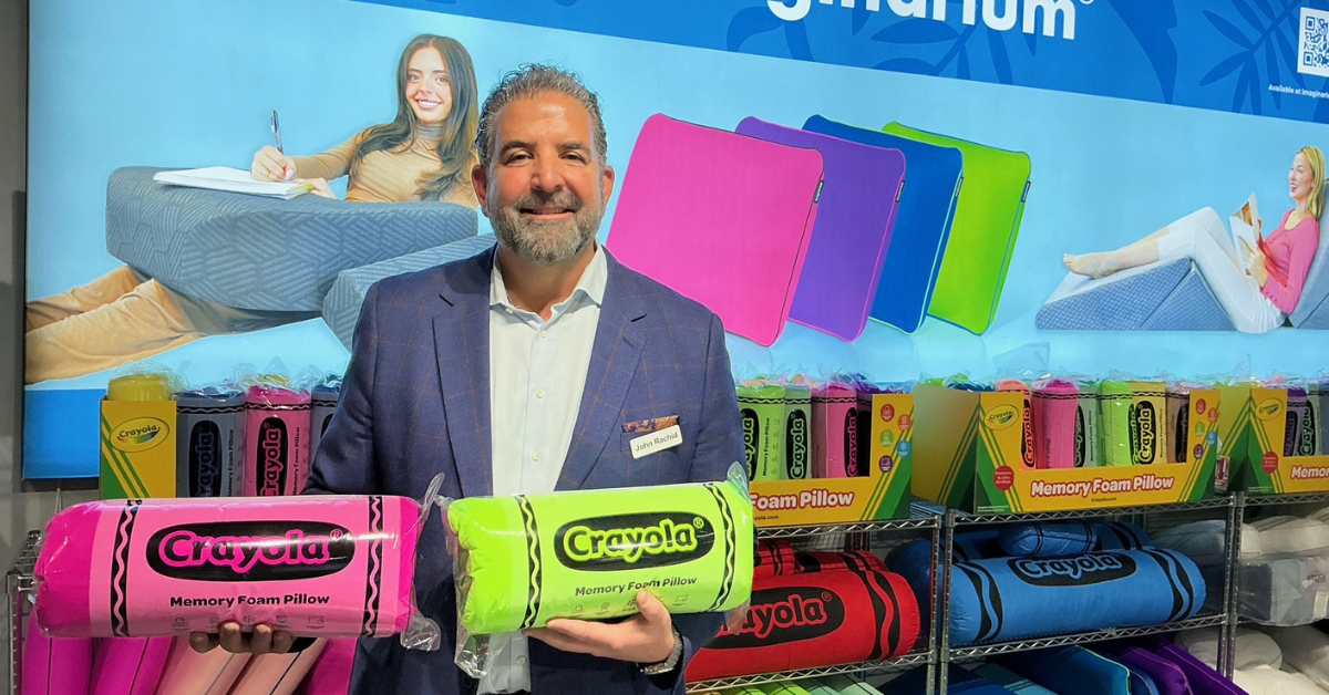 Rachid, a bedding veteran who previously worked at Serta Simmons Bedding, Protect-A-Bed and Tempur Sealy International, joined West Long Branch, New Jersey-based Imaginarium six months ago. He was at the recent Las Vegas Market with several eye-catching introductions, including a colorful line of Crayola memory foam pillows retailing for $29.99.