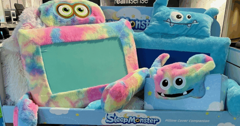 Those pillows, designed for kids 3 and older, were accompanied by the launch of Sleep Monster, a pillow companion product designed for add-on sales for the Crayola pillows and other kids’ pillows. Pillow Monster holds a child’s pillow and creates a fun friend for the child in the bedroom, the playroom and on trips. It retails for $24.99 to $29.99.