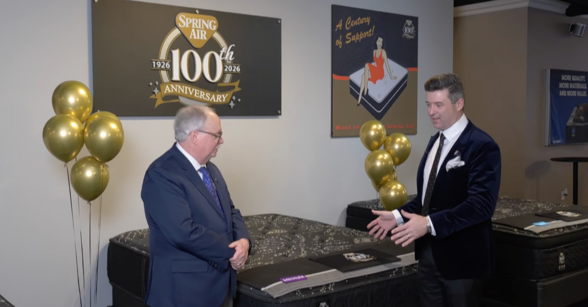 Spring Air’s Nick Bates tells Editor-at-Large Dave Perry how his company is celebrating its 100th anniversary this year with a centennial product line and new cooling high-end memory foam mattresses with high margins for retailers.