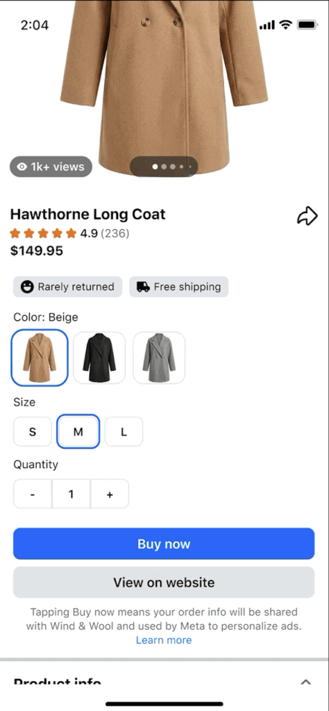When users click on a product in an ad, they will see a “buy now” option, as well as additional product details, recommendations and reviews. These updates reflect a broader push to keep shopping contained within one platform from start to finish.