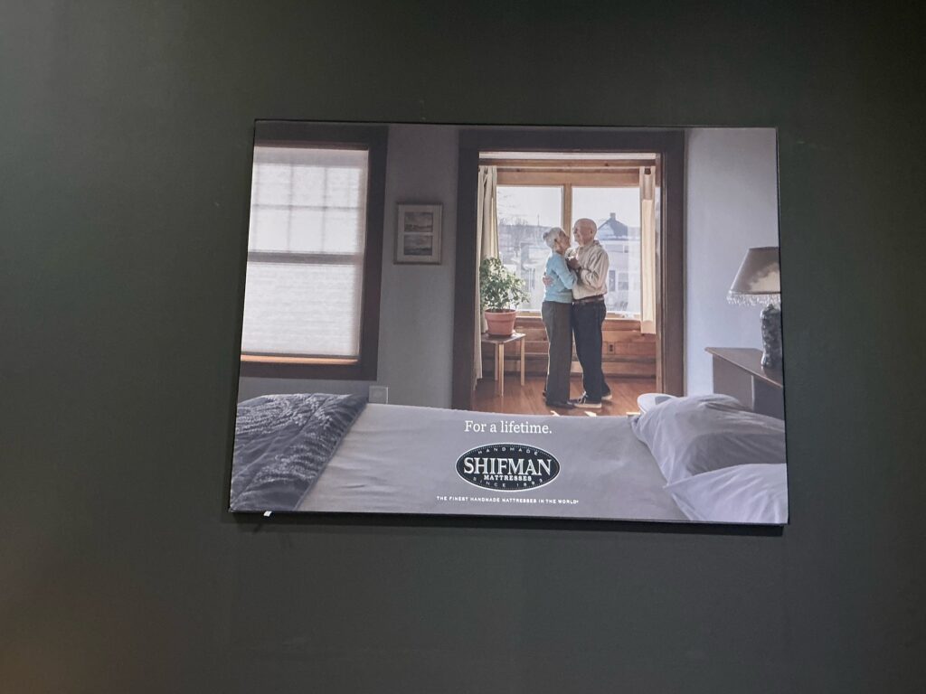“For a lifetime” is a third message, delivered with a picture of an older couple embracing near their Shifman mattress.